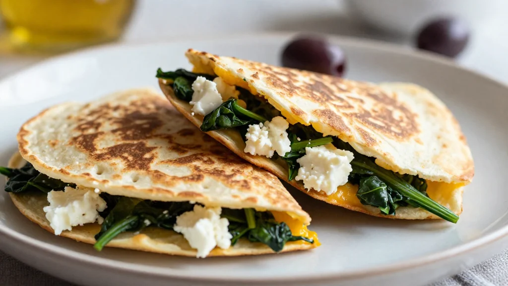 Mediterranean Quesadillas with Spinach, Feta, and Olives
