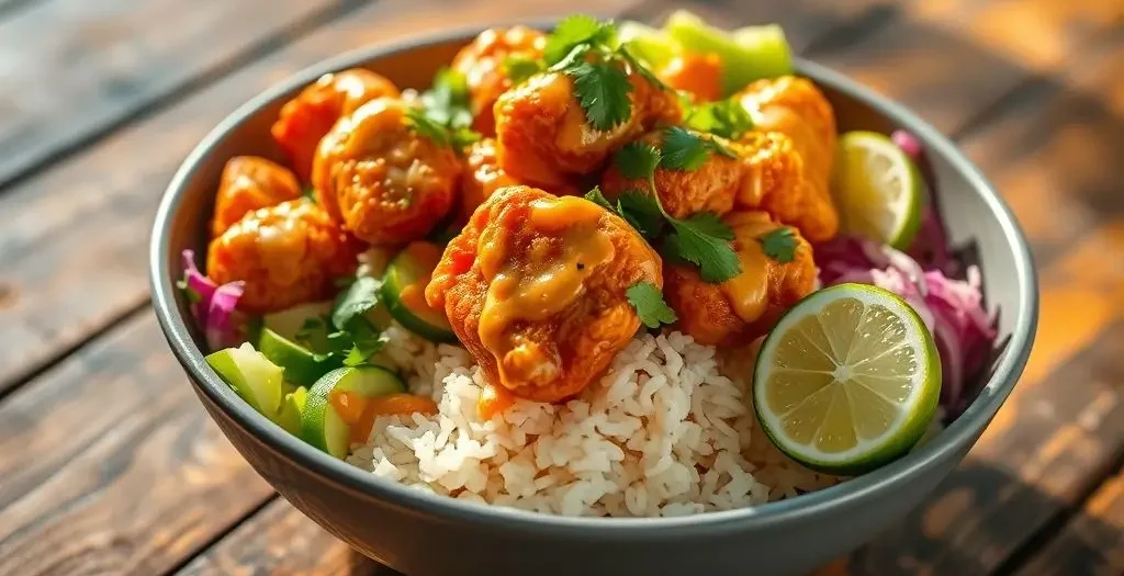 - Assemble: Pile rice in bowls, top with chicken, drizzle sauce like you’re Jackson Pollock, and add your favorite crunchy veggies.