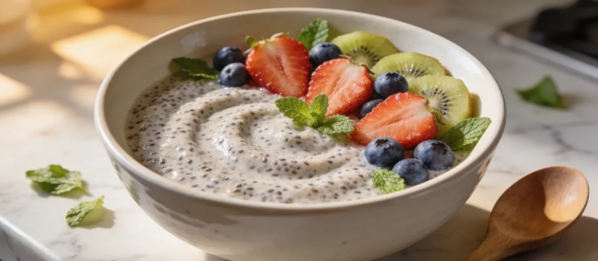 This creamy vegan chia pudding is a satisfying and nutritious breakfast that can be customized with various toppings and flavors.