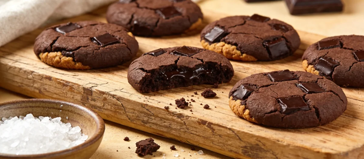These dark chocolate cookies deliver an intensely rich chocolate flavor, with a soft center and slightly chewy edges, reminiscent of brownies.
