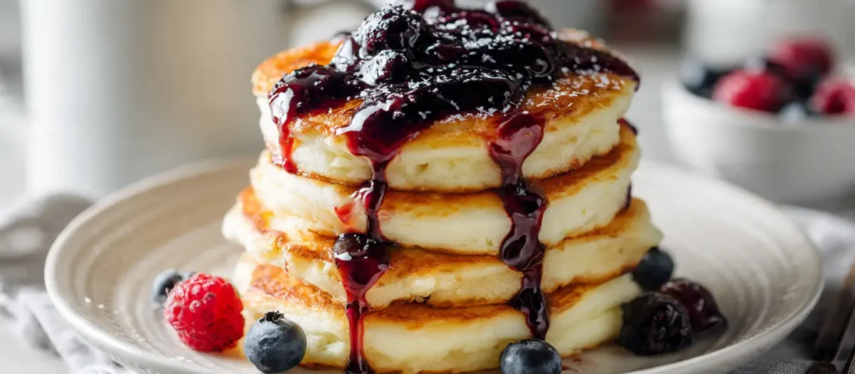 High-Protein Cottage Cheese Pancakes with Berry Syrup Swirl