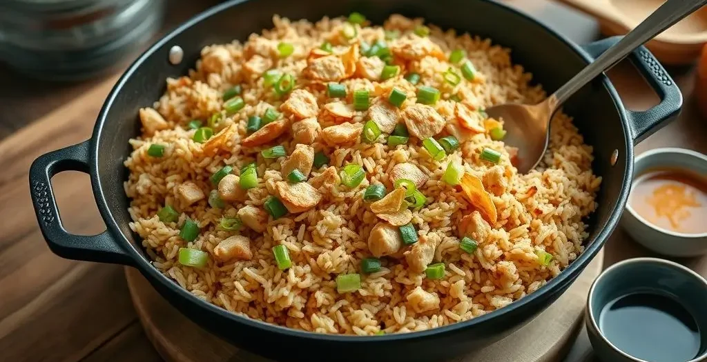 Crispy Texture Perfection: The chicken gets incredibly crispy edges while staying tender inside, and the rice gets that coveted wok-fried texture