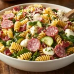 This vibrant Italian Pasta Salad combines al dente pasta spirals with creamy fresh mozzarella pearls, crisp cucumber, nutrient-packed spinach, zesty red onion, sweet sun-dried tomatoes, and savory salami chunks—all embraced by a flavor-packed Italian dressing. It’s my go-to recipe for summer potlucks, backyard BBQs, and quick weeknight meals that never disappoint!