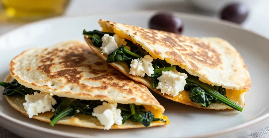 Mediterranean Quesadillas with Spinach, Feta, and Olives