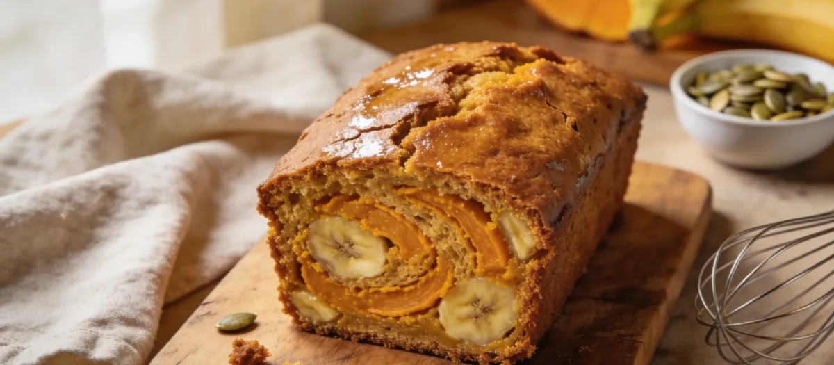 This pumpkin banana bread recipe is incredibly moist with a perfect balance of warm spices and natural sweetness. It's a simple one-bowl recipe that transforms overripe bananas and pumpkin puree into a delightful bread.