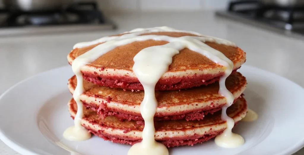 Red Velvet Pancakes Recipe with Cream Cheese Drizzle