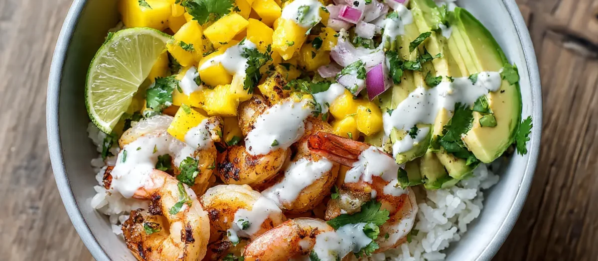 Fresh and vibrant shrimp and avocado bowls topped with homemade mango salsa and creamy lime-chili sauce. Perfect for healthy dinners, meal prep, or summer entertaining. Easy to customize and absolutely delicious.