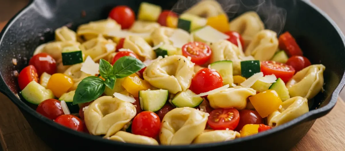 Last week, I found myself staring into my fridge at 6 PM with absolutely no dinner plan and a bunch of vegetables that needed to be used before they went bad. You know that feeling, right? That’s when I threw together this Quick Summer Veggie Tortellini Skillet, and honestly, it’s become one of my go-to weeknight meals ever since. My kids actually cheered when I told them we were having it again three days later – and trust me, getting cheers for vegetables is no small feat in my house.